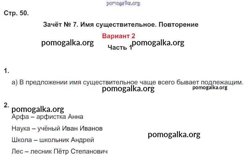 Готовые ответы - Русский язык 4 класс Зачетные работы Алимпиева М.Н. - часть 1. страница 50
