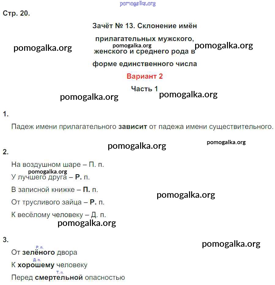 Готовые ответы - Русский язык 4 класс Зачетные работы Алимпиева М.Н. - часть 2. страница 20