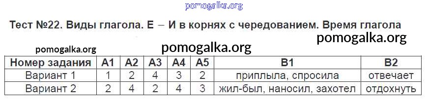 Готовые ответы - Русский язык 5 класс КИМ Селезнева Е.В. - тест 22