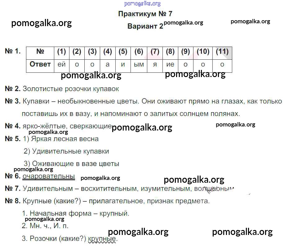 Готовые ответы - Русский язык 5 класс рабочая тетрадь Гулеватая О.Н. - практикум 7 практикум 2