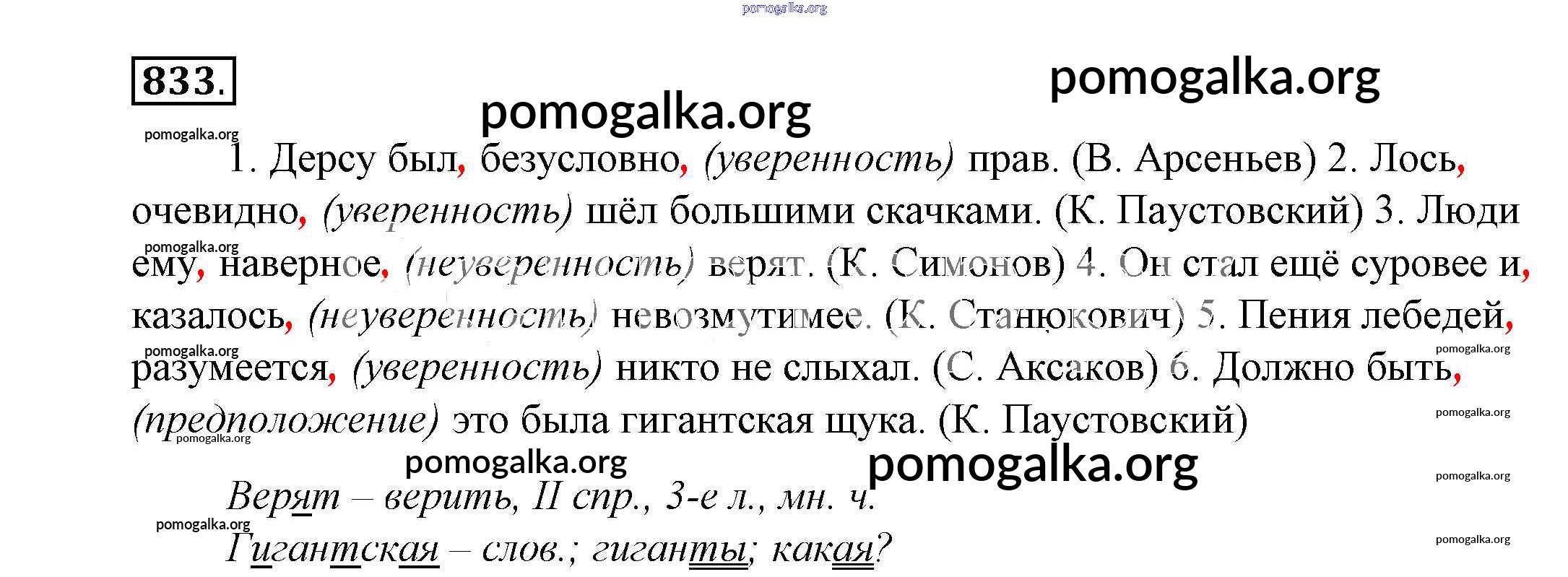 Готовые ответы - Русский язык 5 класс Купалова - упражнение 833