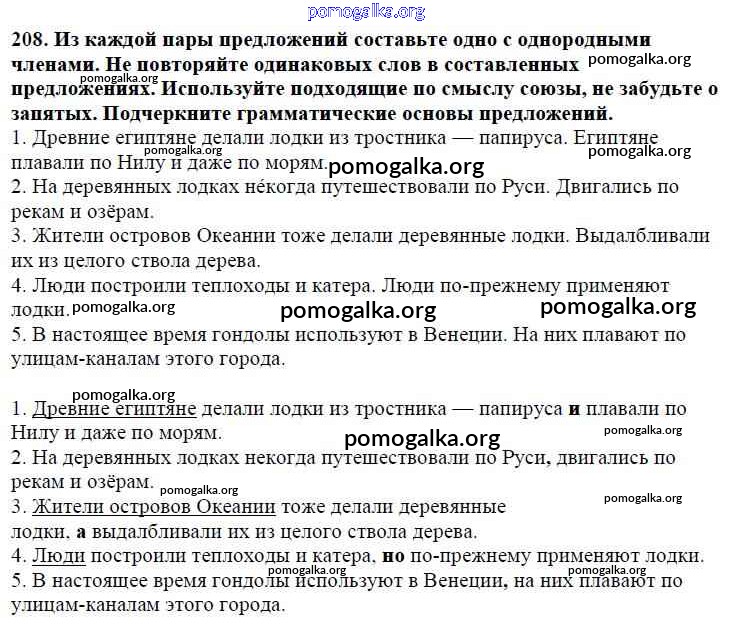 Готовые ответы - Русский язык 5 класс Ладыженская Т.А. - часть 1. упражнение 208