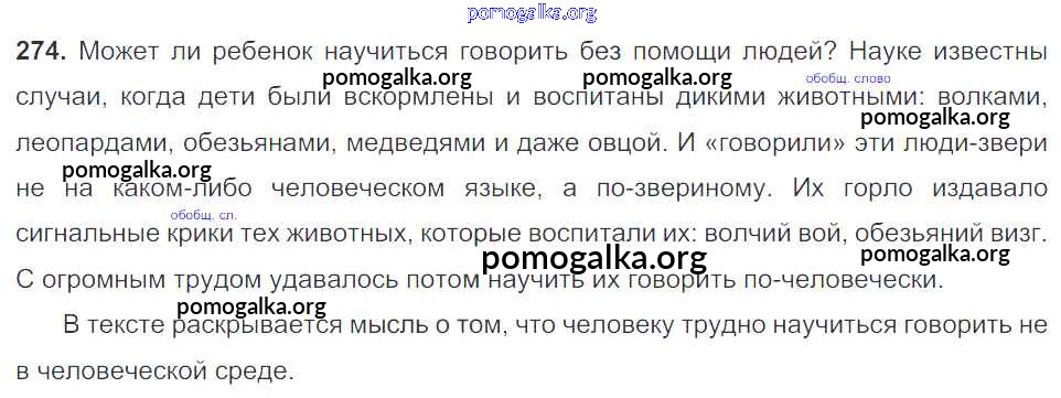 Готовые ответы - Русский язык 5 класс Ладыженская Т.А. - часть 1. упражнение 274