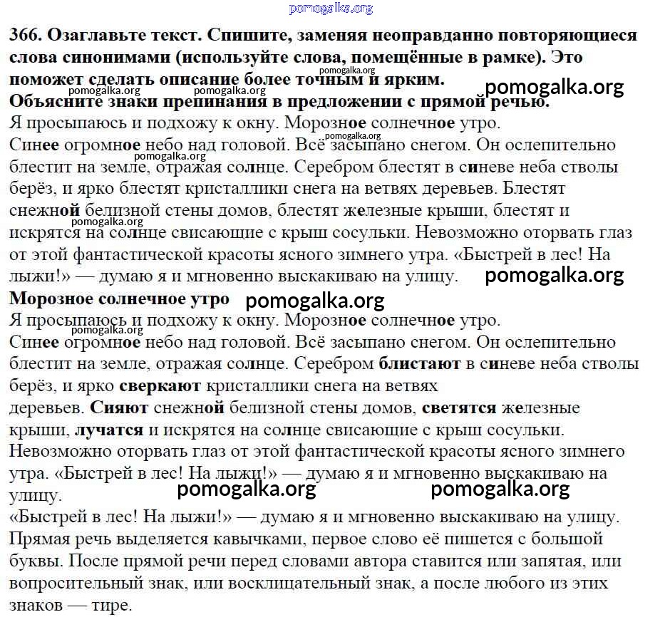 Готовые ответы - Русский язык 5 класс Ладыженская Т.А. - часть 1. упражнение 366