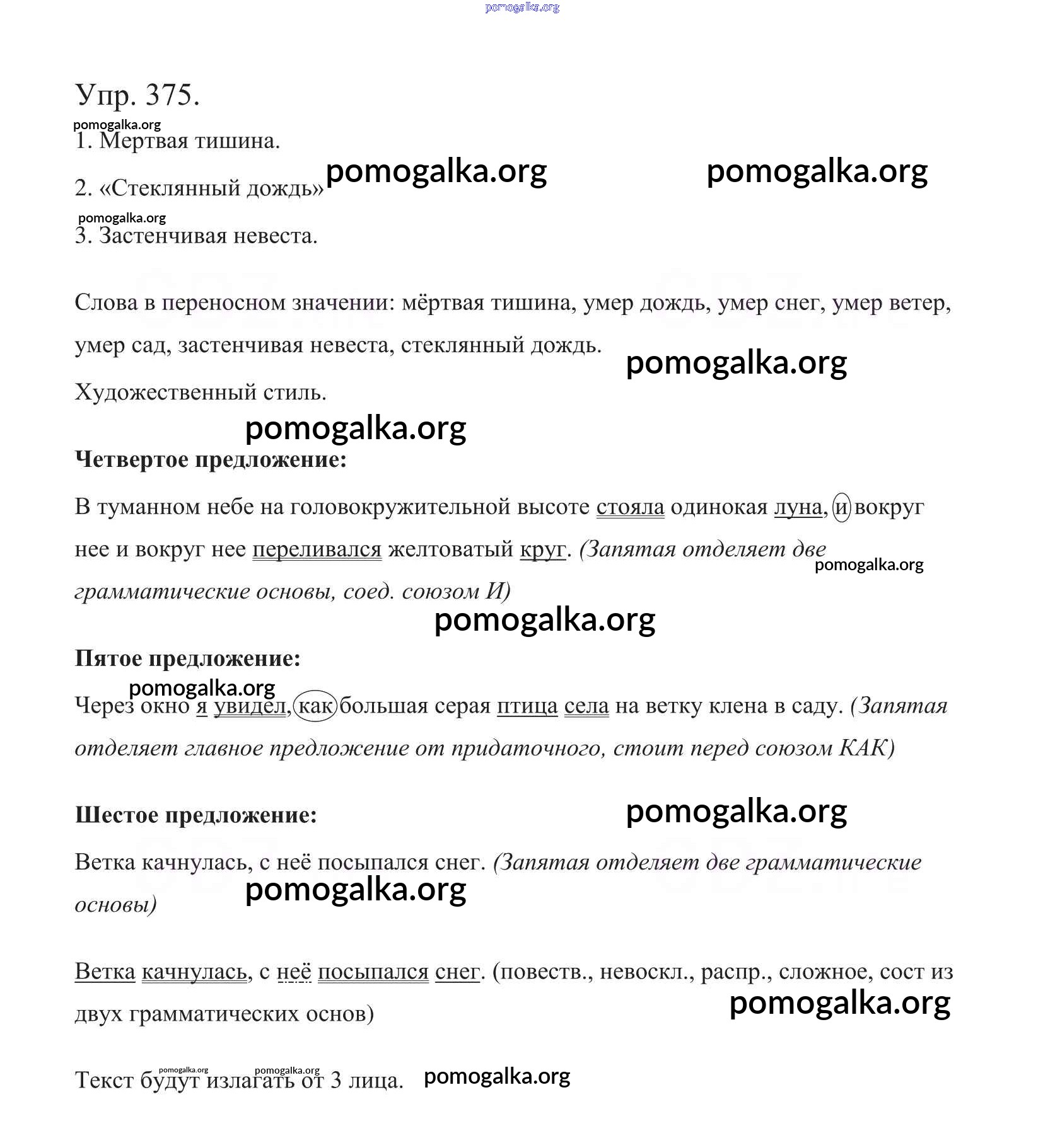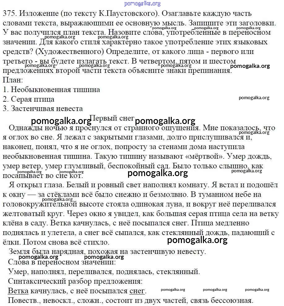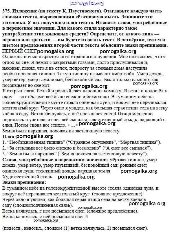 Готовые ответы - Русский язык 5 класс Ладыженская Т.А. - часть 1. упражнение 375