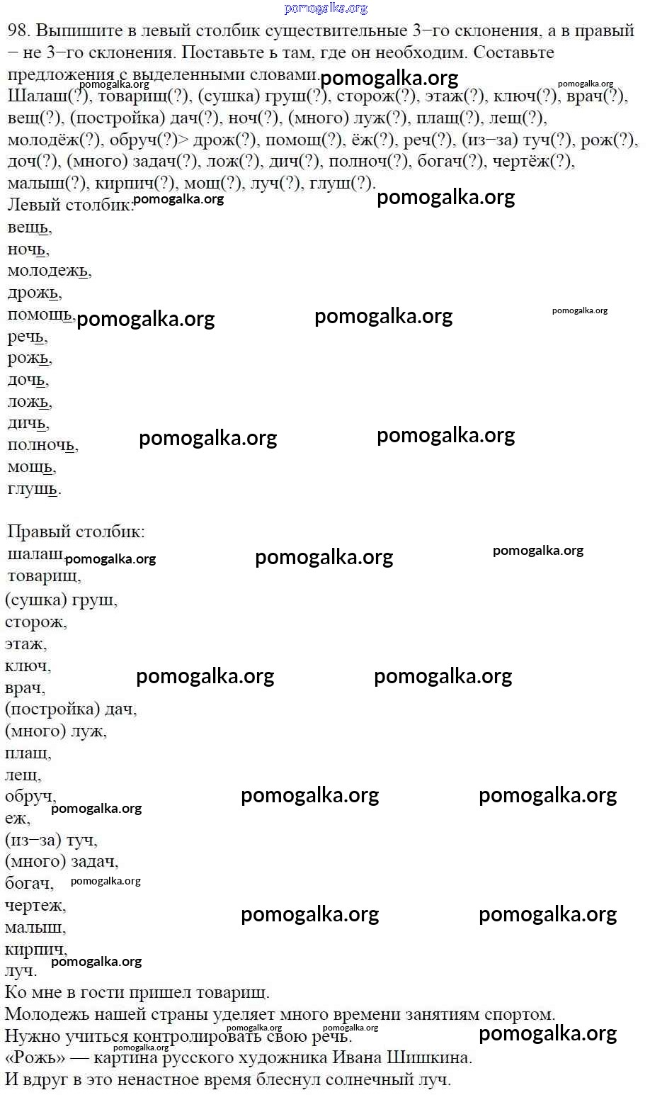 Готовые ответы - Русский язык 5 класс Ладыженская Т.А. - часть 1. упражнение 98