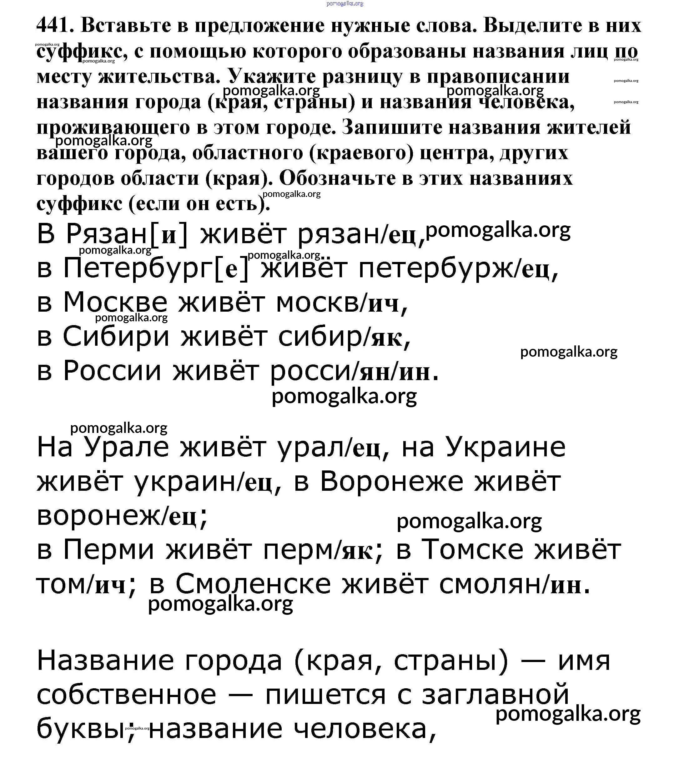 Готовые ответы - Русский язык 5 класс Ладыженская Т.А. - часть 2. упражнение 441