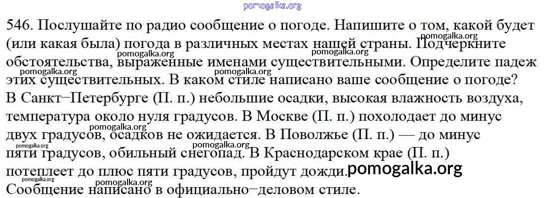 Готовые ответы - Русский язык 5 класс Ладыженская Т.А. - часть 2. упражнение 546