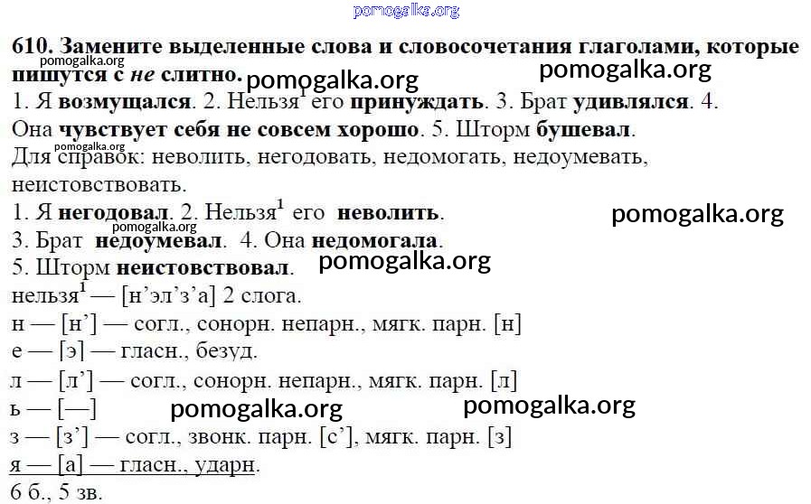 Готовые ответы - Русский язык 5 класс Ладыженская Т.А. - часть 2. упражнение 610