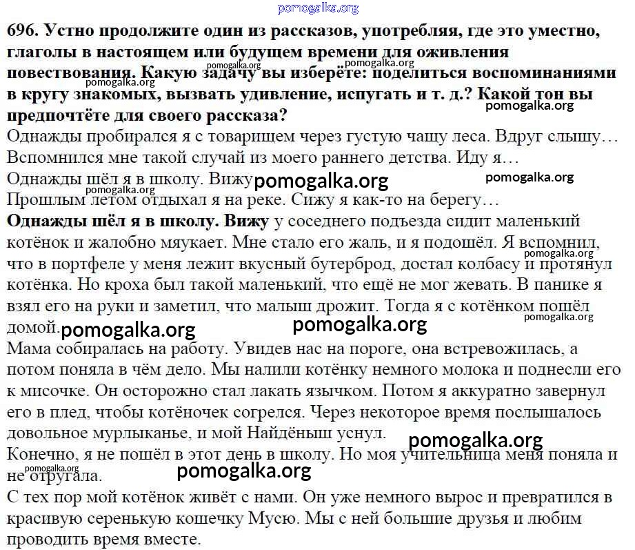 Готовые ответы - Русский язык 5 класс Ладыженская Т.А. - часть 2. упражнение 696
