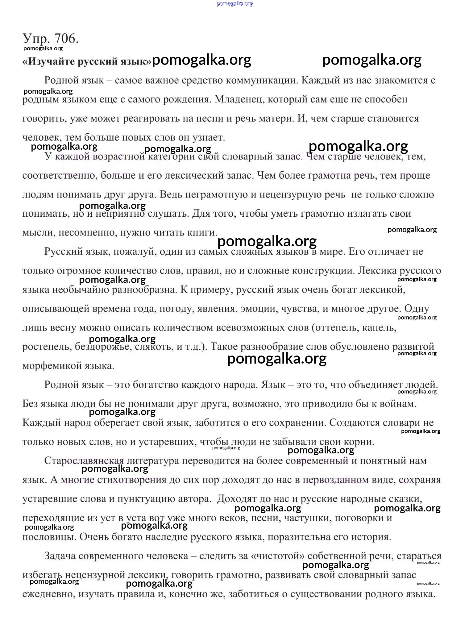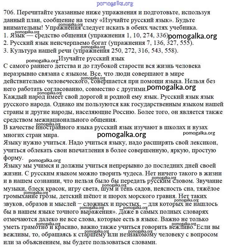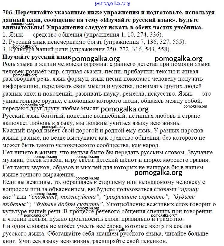 Готовые ответы - Русский язык 5 класс Ладыженская Т.А. - часть 2. упражнение 706