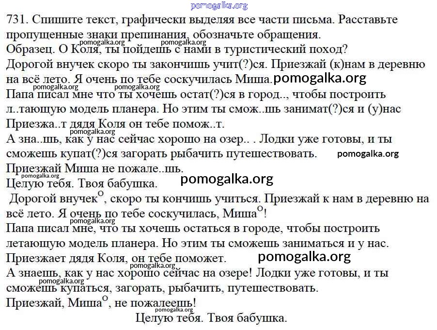 Готовые ответы - Русский язык 5 класс Ладыженская Т.А. - часть 2. упражнение 731