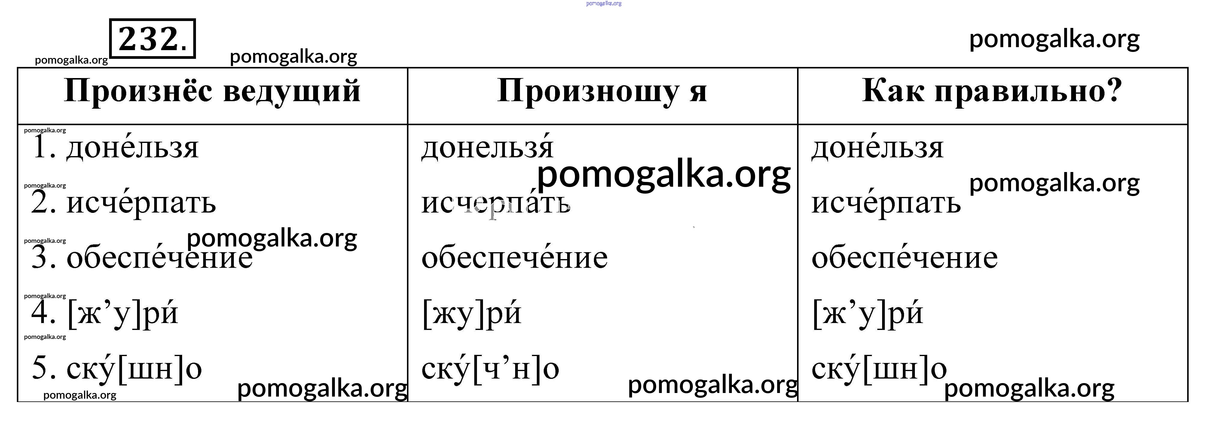 Готовые ответы - Русский язык 5 класс Разумовская М.М. - упражнение 232