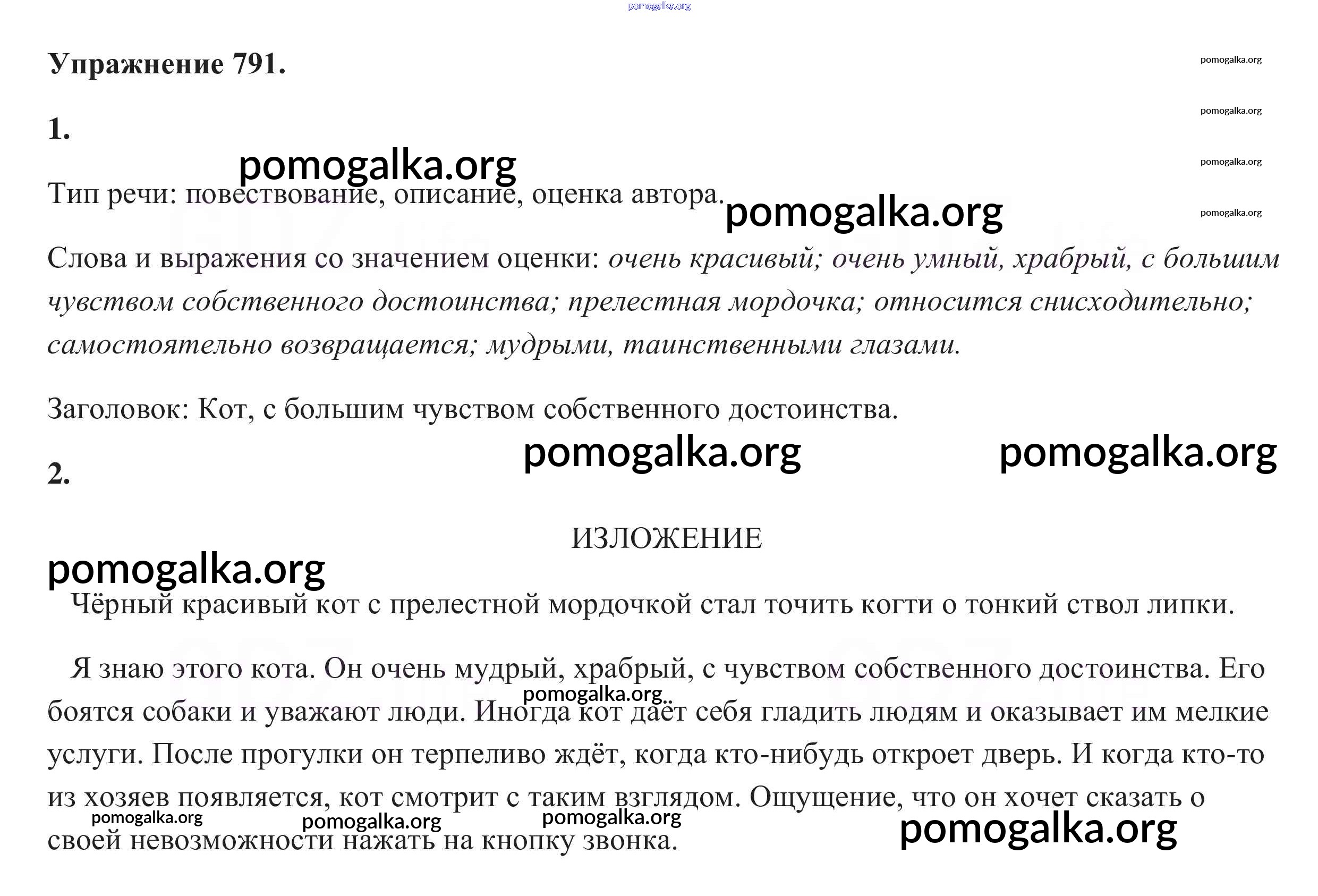 Готовые ответы - Русский язык 5 класс Разумовская М.М. - упражнение 791