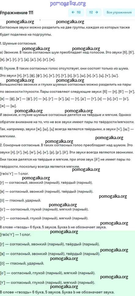 Готовые ответы - Русский язык 5 класс Шмелёв - глава 2 часть 1 111