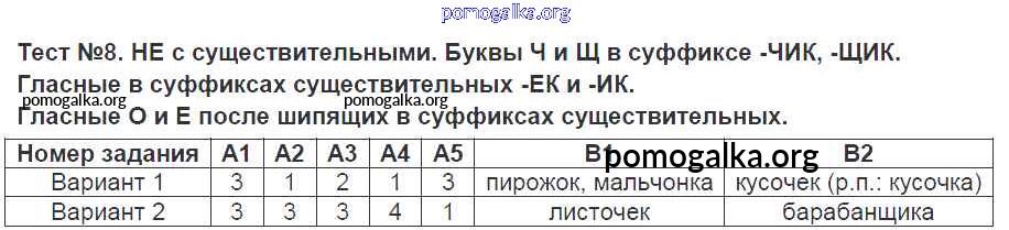 Готовые ответы - Русский язык 6 класс контрольно-измерительные материалы (КИМ) Аксенова Л.А. - тест 8