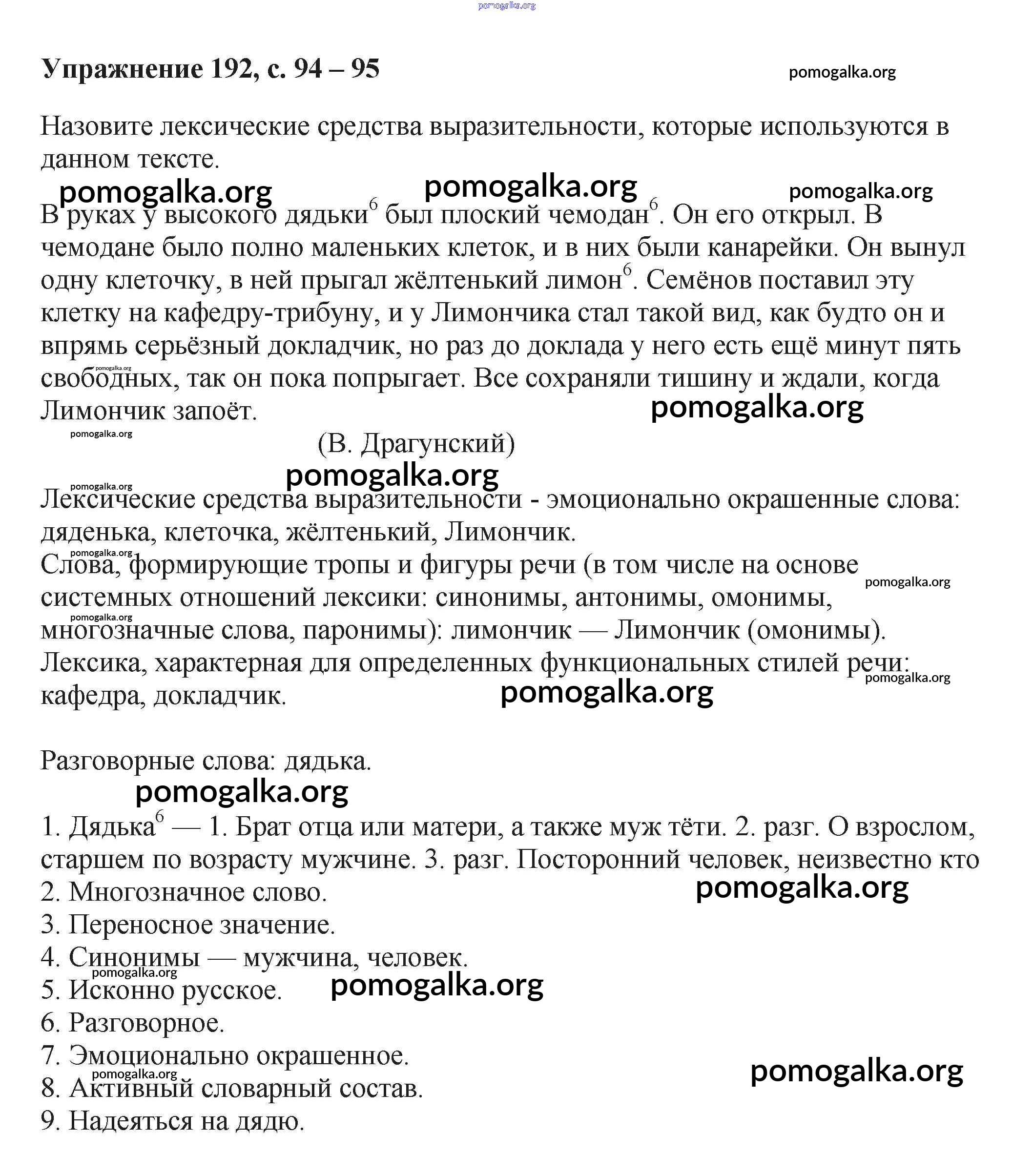 Готовые ответы - Русский язык 6 класс Баранов М.Т. - упражнение часть 1 192