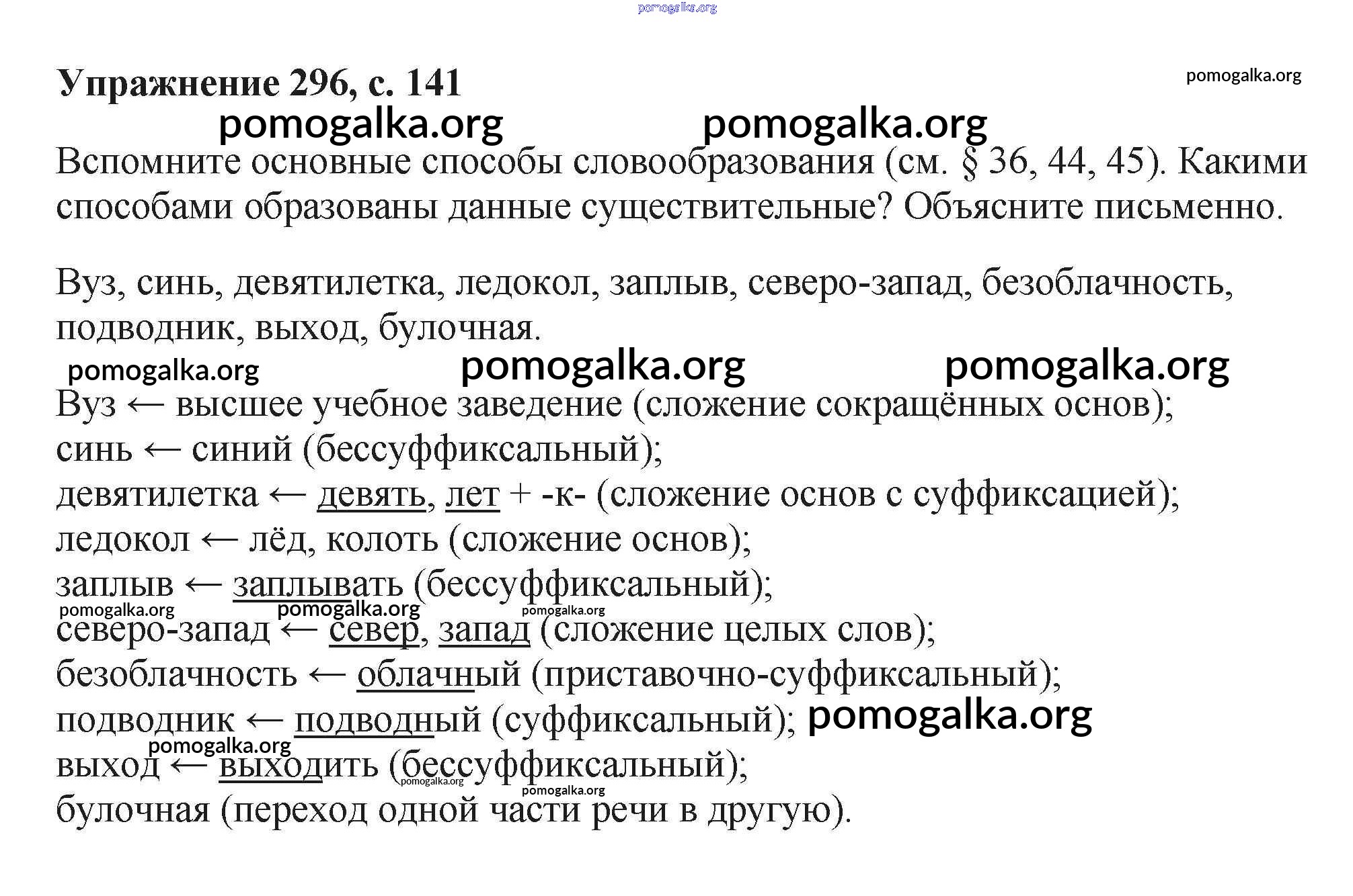 Готовые ответы - Русский язык 6 класс Баранов М.Т. - упражнение часть 1 296