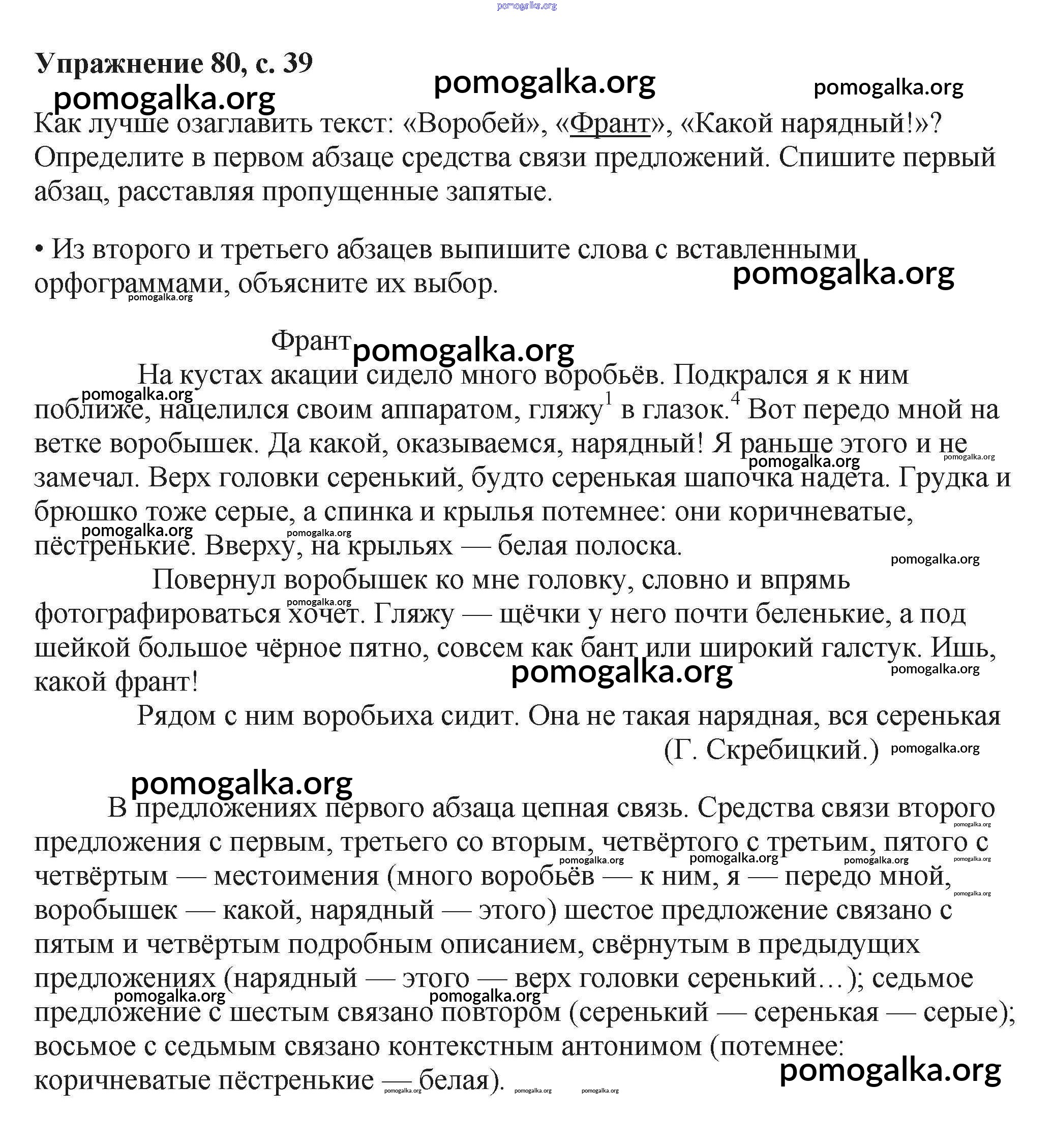 Готовые ответы - Русский язык 6 класс Баранов М.Т. - упражнение часть 1 80