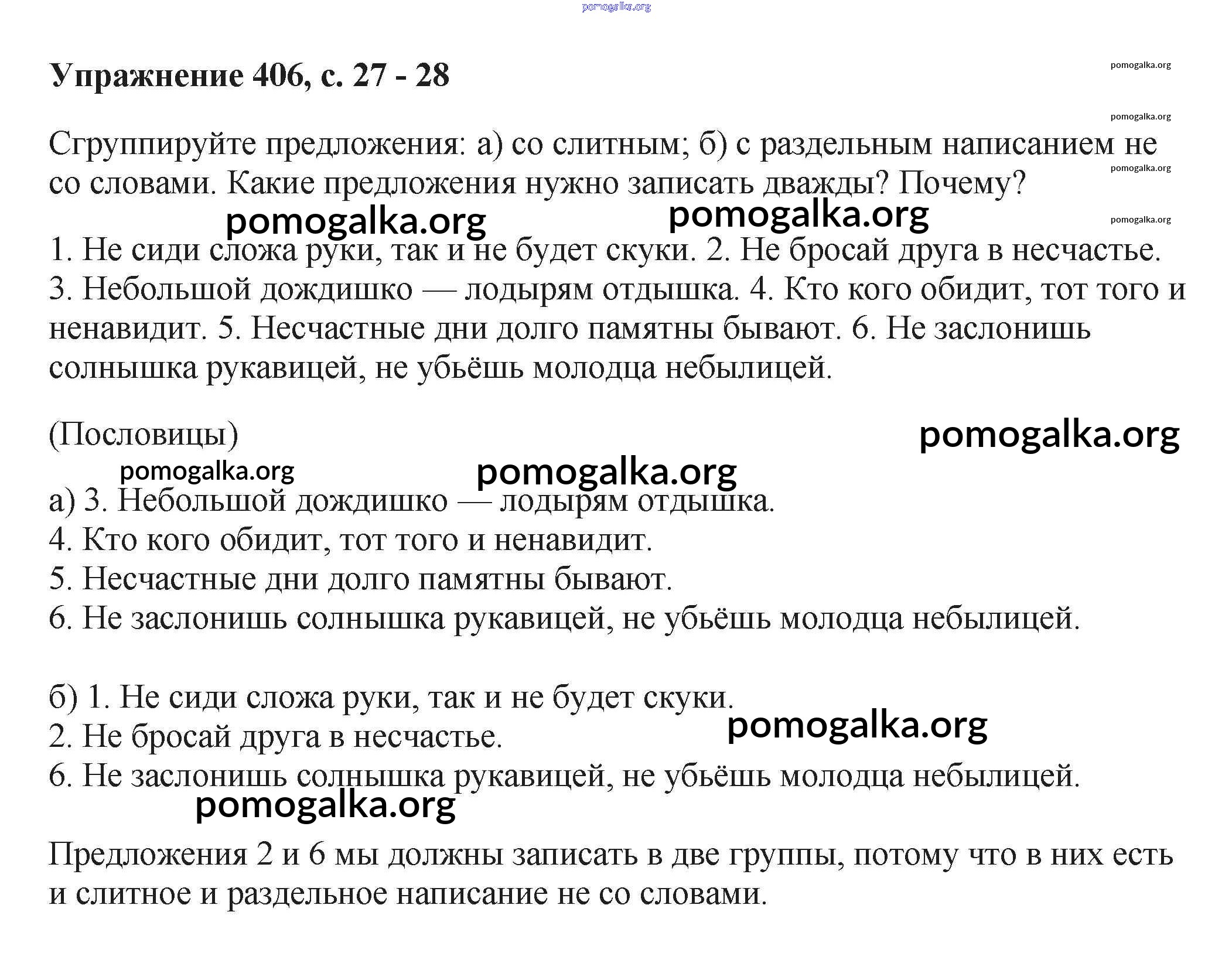 Трать меньше времени на решение домашнего задания. Зайдя на помогалку, вы найдете все подходящие ответы к Учебнику Русский язык 6 класс Баранов, Ладыженская Часть 1, 2 на упражнение Упражнения 363-671 часть 2 406