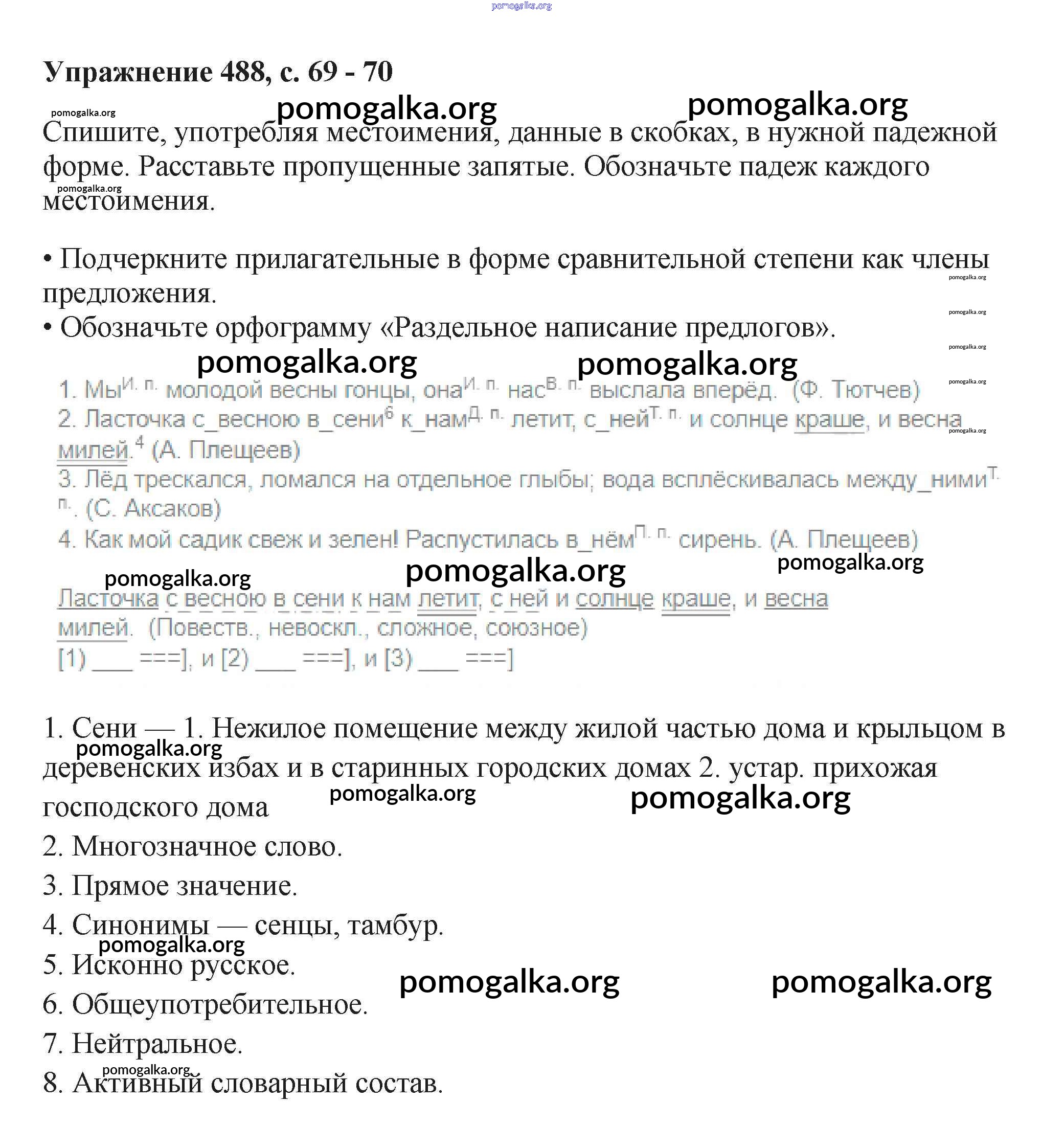 Готовые ответы - Русский язык 6 класс Баранов М.Т. - упражнение часть 2 488