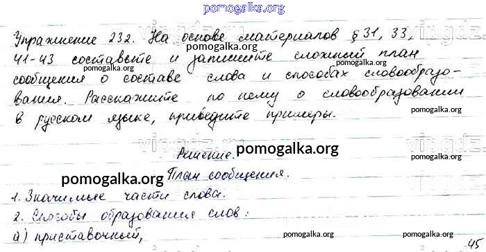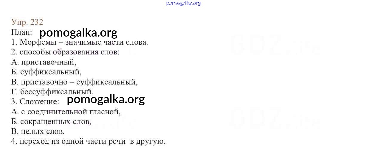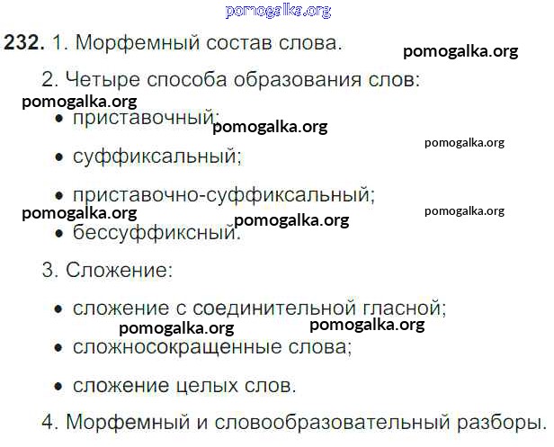 Трать меньше времени на решение домашнего задания. Зайдя на помогалку, вы найдете все подходящие ответы к Учебнику Русский язык 6 класс Баранов, Ладыженская Часть 1, 2 на упражнение Упражнения 1-317 часть 1 232