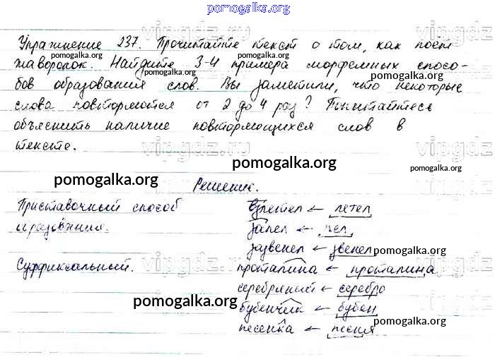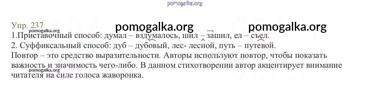 Трать меньше времени на решение домашнего задания. Зайдя на помогалку, вы найдете все подходящие ответы к Учебнику Русский язык 6 класс Баранов, Ладыженская Часть 1, 2 на упражнение Упражнения 1-317 часть 1 237
