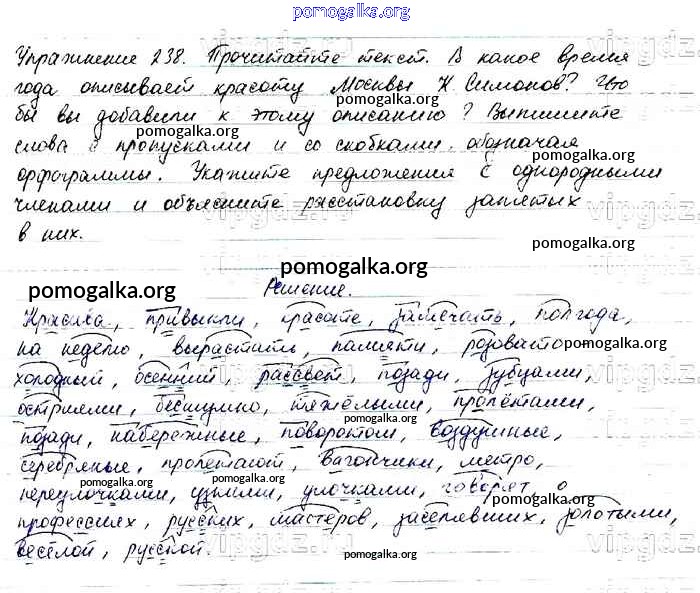 Готовые ответы - Русский язык 6 класс Баранов М.Т. - упражнение часть 1 238