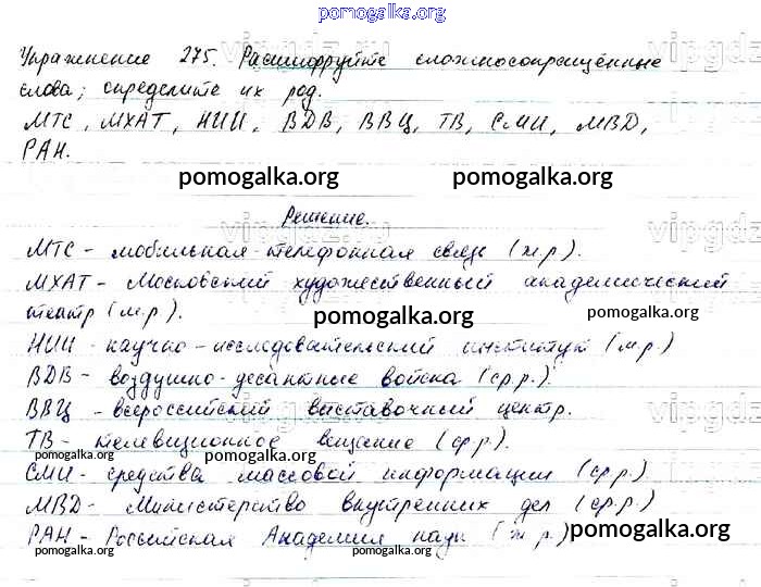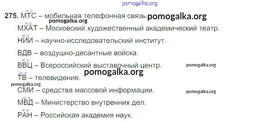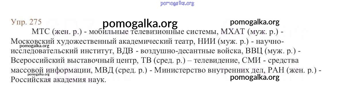 Трать меньше времени на решение домашнего задания. Зайдя на помогалку, вы найдете все подходящие ответы к Учебнику Русский язык 6 класс Баранов, Ладыженская Часть 1, 2 на упражнение Упражнения 1-317 часть 1 275