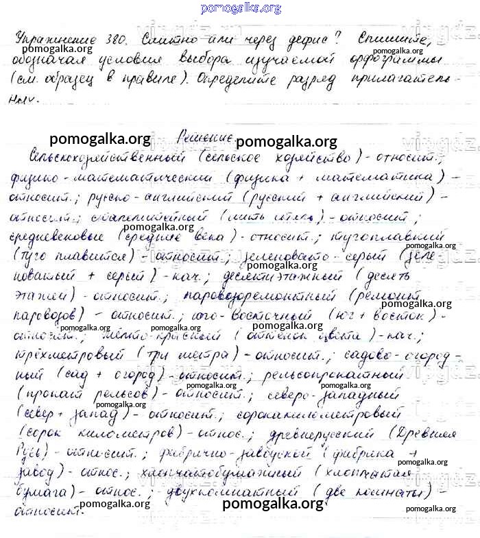 Трать меньше времени на решение домашнего задания. Зайдя на помогалку, вы найдете все подходящие ответы к Учебнику Русский язык 6 класс Баранов, Ладыженская Часть 1, 2 на упражнение Упражнения 318-621 часть 2 380