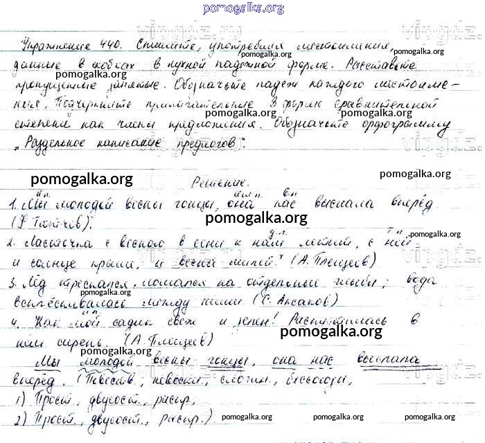 Трать меньше времени на решение домашнего задания. Зайдя на помогалку, вы найдете все подходящие ответы к Учебнику Русский язык 6 класс Баранов, Ладыженская Часть 1, 2 на упражнение Упражнения 318-621 часть 2 440