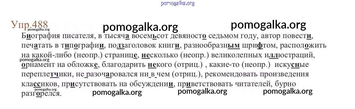Готовые ответы - Русский язык 6 класс Баранов М.Т. - упражнение часть 2 488