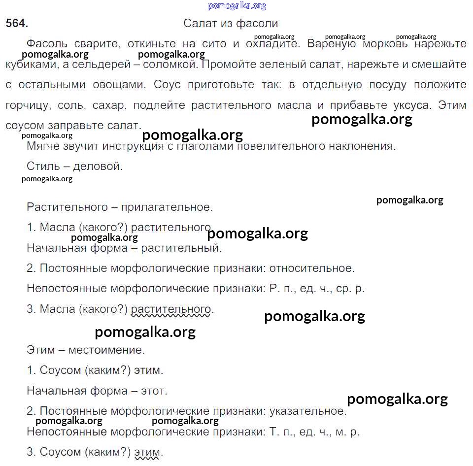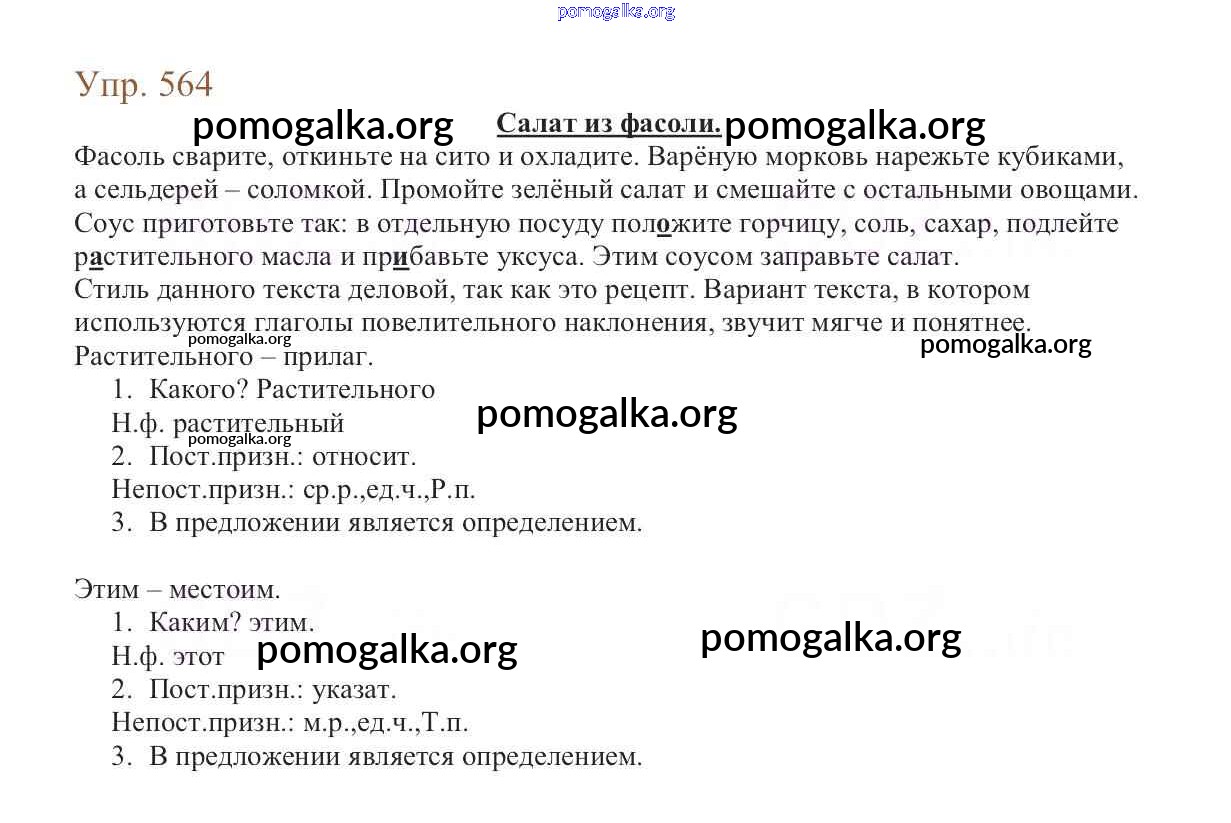 Трать меньше времени на решение домашнего задания. Зайдя на помогалку, вы найдете все подходящие ответы к Учебнику Русский язык 6 класс Баранов, Ладыженская Часть 1, 2 на упражнение Упражнения 318-621 часть 2 564