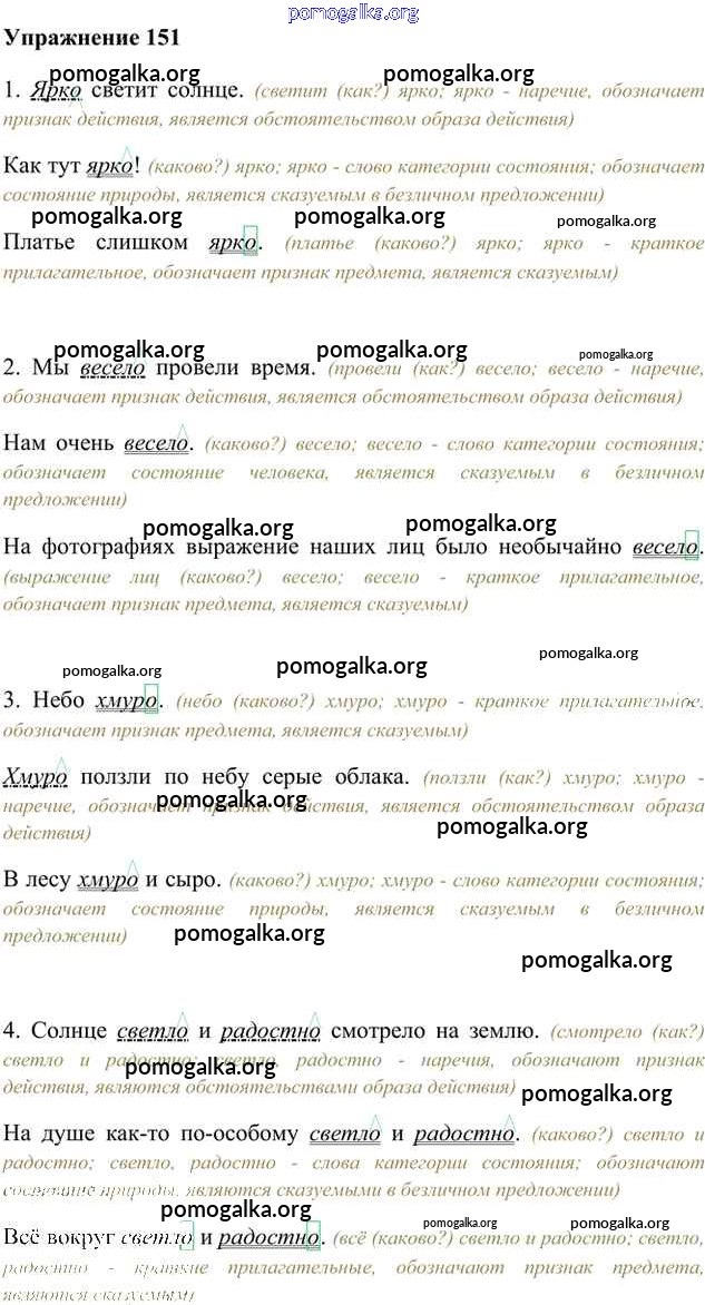 Готовые ответы - Русский язык 6 класс Быстрова Е.А. - упражнение часть 2 151