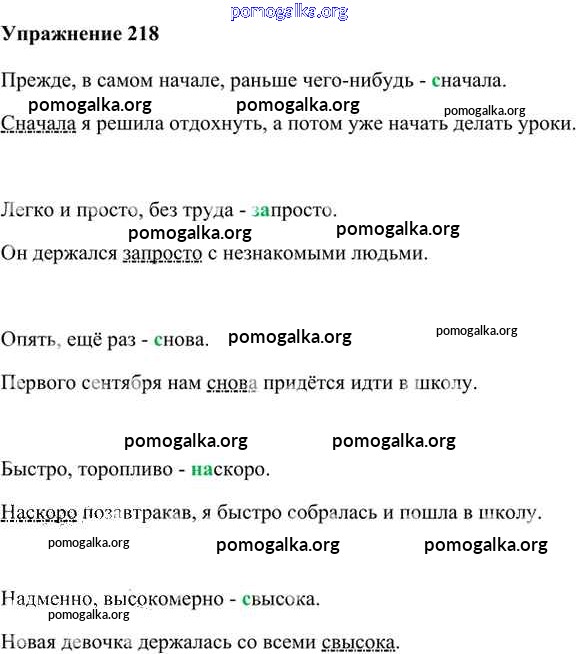 Готовые ответы - Русский язык 6 класс Быстрова Е.А. - упражнение часть 2 218