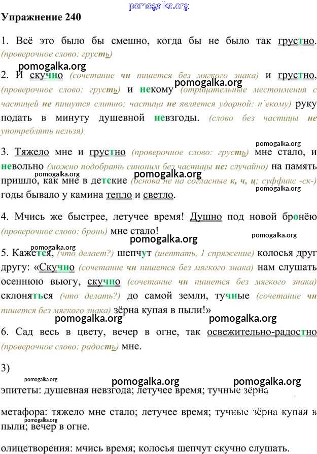 Готовые ответы - Русский язык 6 класс Быстрова Е.А. - упражнение часть 2 240