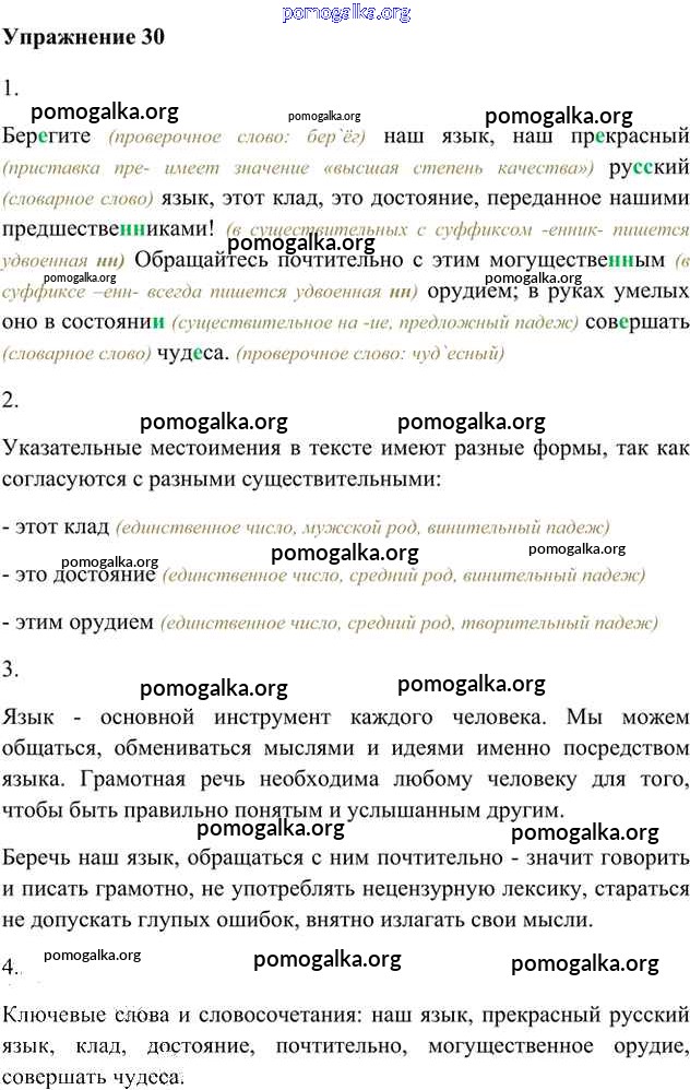 Готовые ответы - Русский язык 6 класс Быстрова Е.А. - упражнение часть 2 30