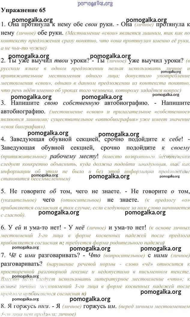 Готовые ответы - Русский язык 6 класс Быстрова Е.А. - упражнение часть 2 65