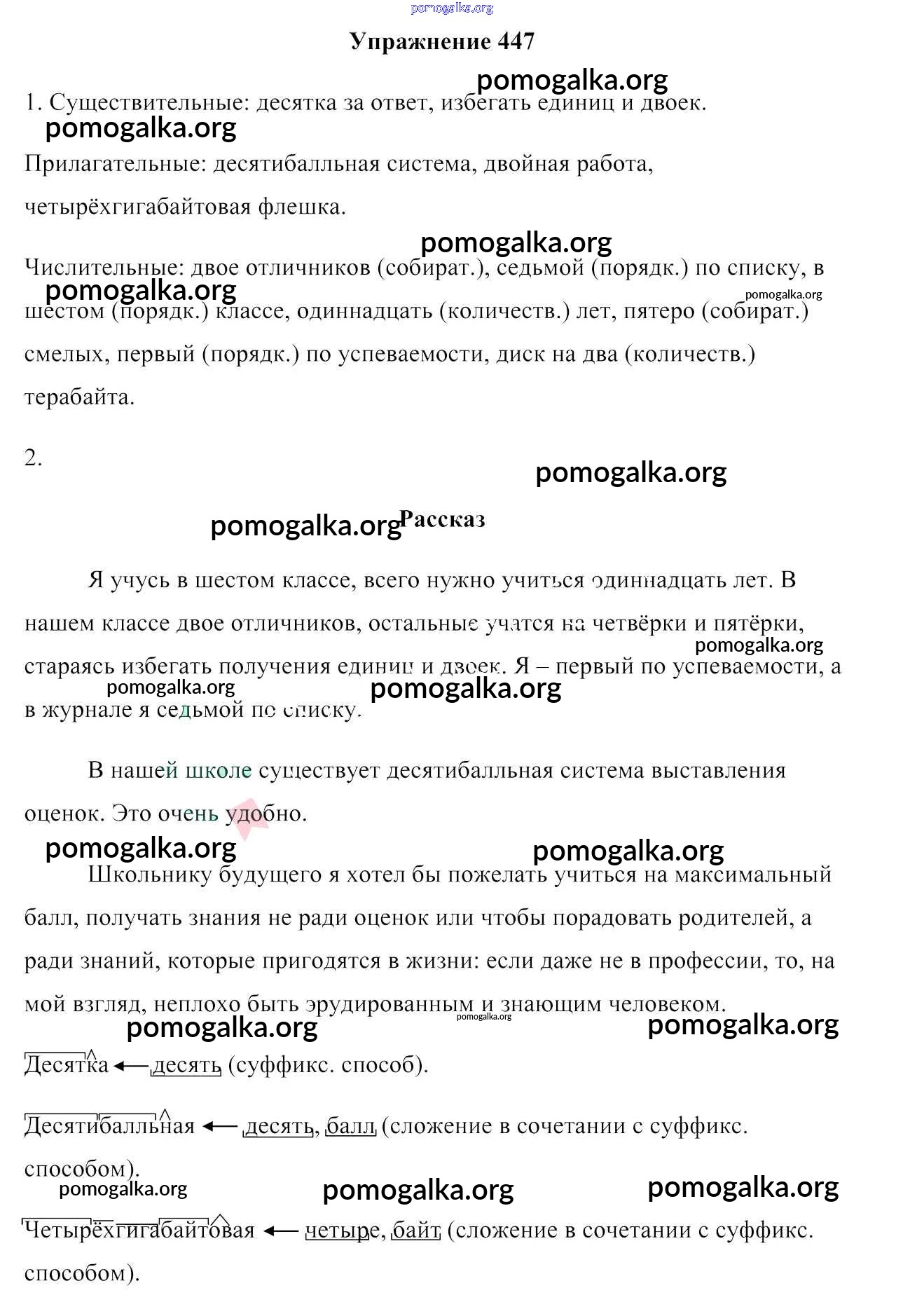 Готовые ответы - Русский язык 6 класс Мурина Л.A - упражнение 447