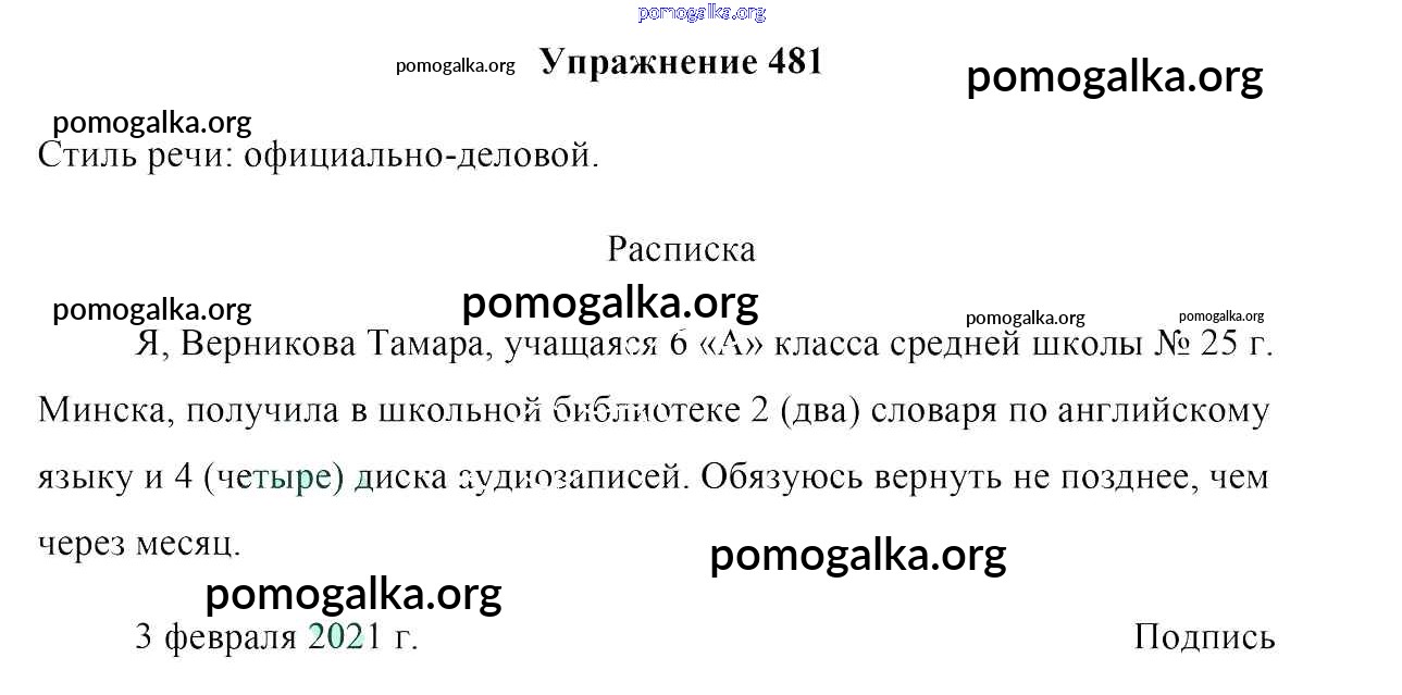 Готовые ответы - Русский язык 6 класс Мурина Л.A - упражнение 481