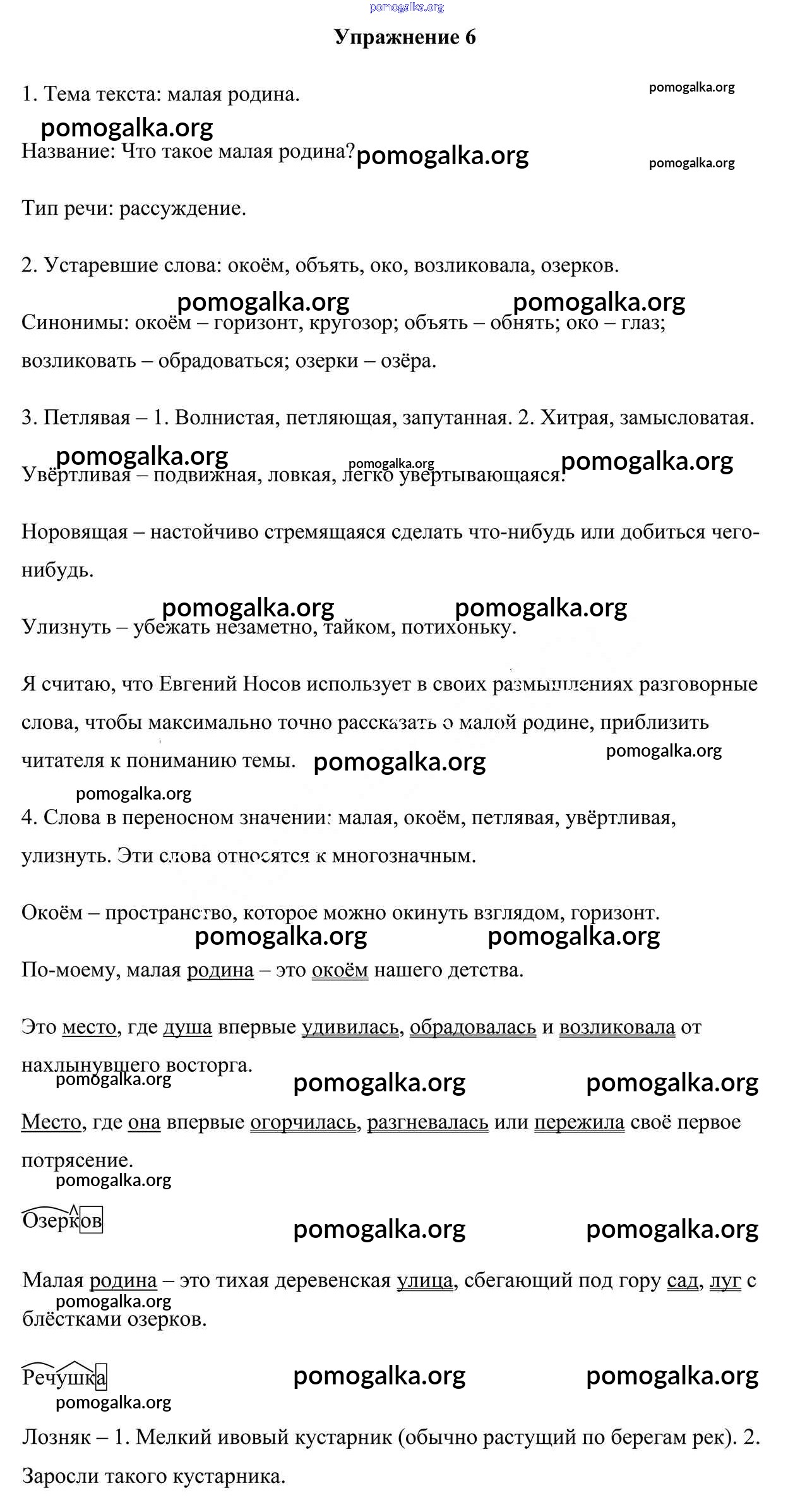 Готовые ответы - Русский язык 6 класс Мурина Л.A - упражнение 6