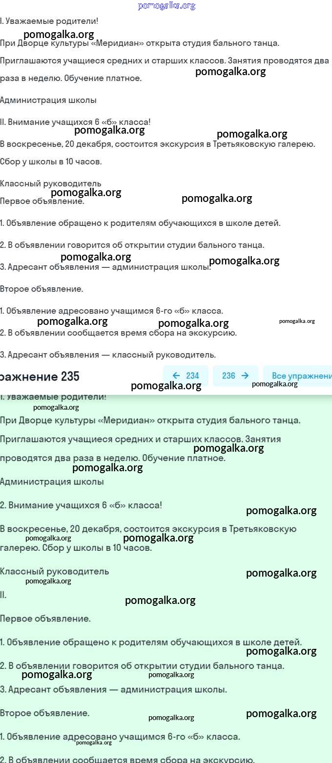 Готовые ответы - Русский язык 6 класс Разумовская М.М. - упражнение 235