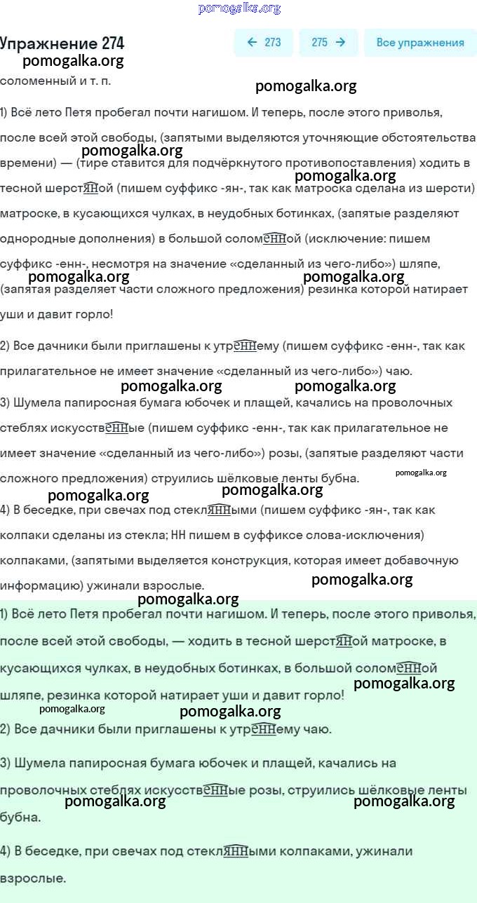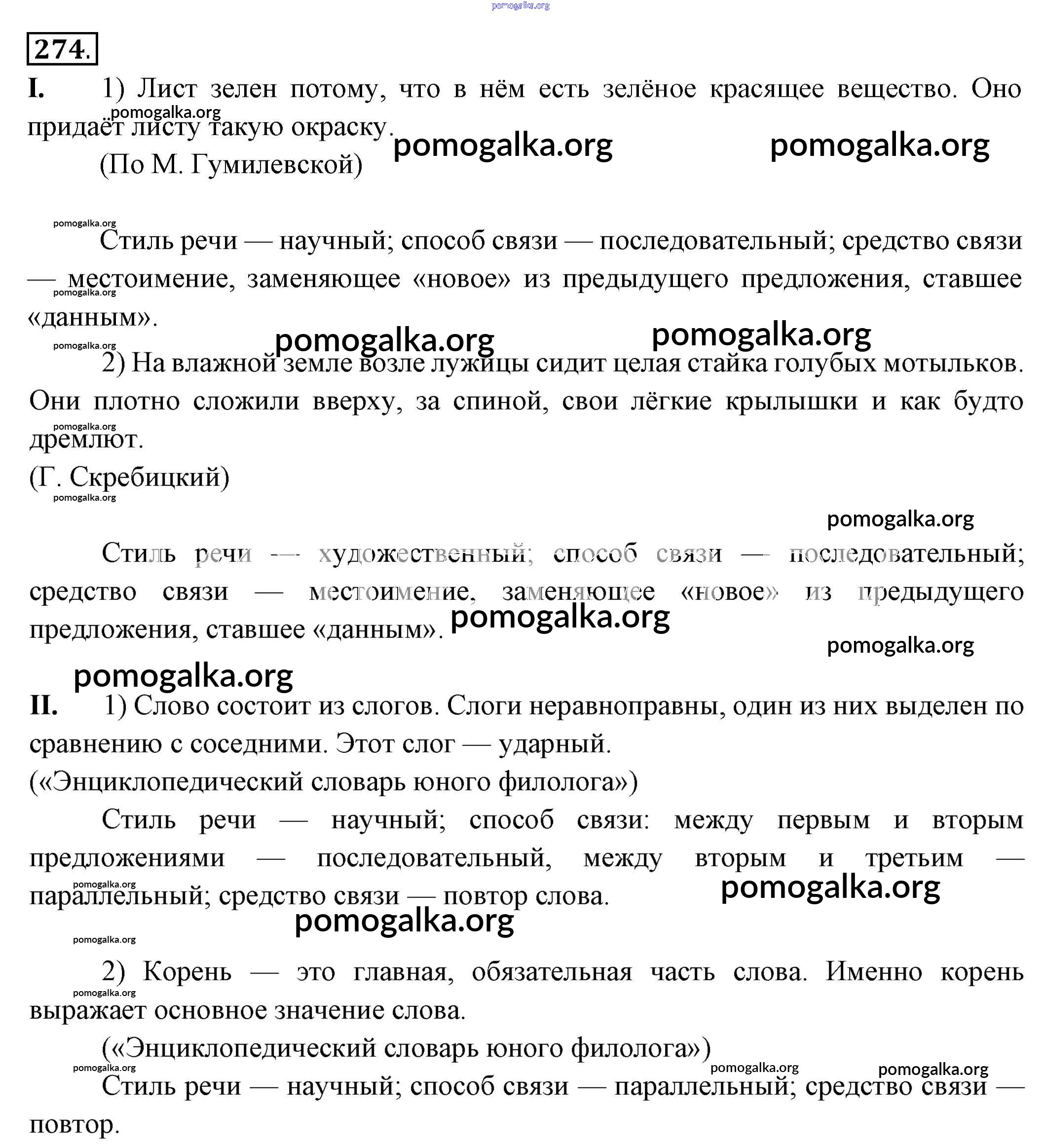 Готовые ответы - Русский язык 6 класс Разумовская М.М. - упражнение 274