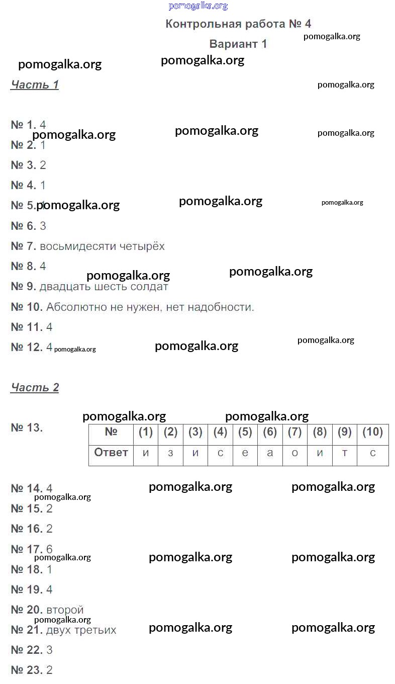 Готовые ответы - Русский язык 6 класс тематический контроль Александров В.Н. - кр-4 контрольная работа вариант-1