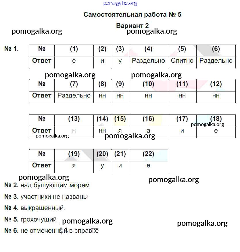 Готовые ответы - Русский язык 7 класс рабочая тетрадь. Тематический контроль. Александров В.Н. - ср-5. вариант самостоятельная работа 2