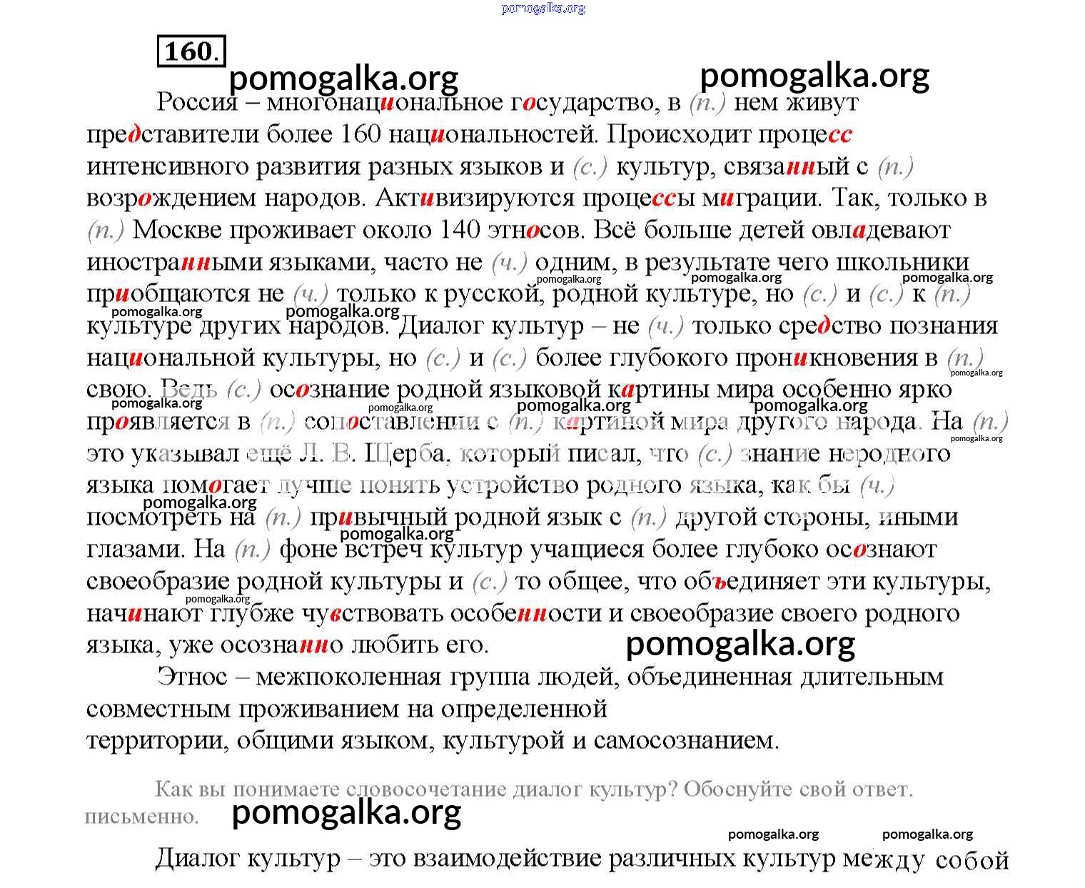 Готовые ответы - Скорая помощь по русскому языку 7 класс рабочая тетрадь Янченко В.Д. - упражнение 160