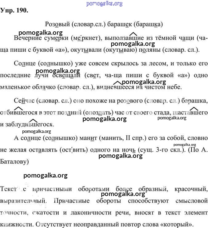 Готовые ответы - Русский язык 7 класс Быстрова Е.А. - упражнение часть 1 190