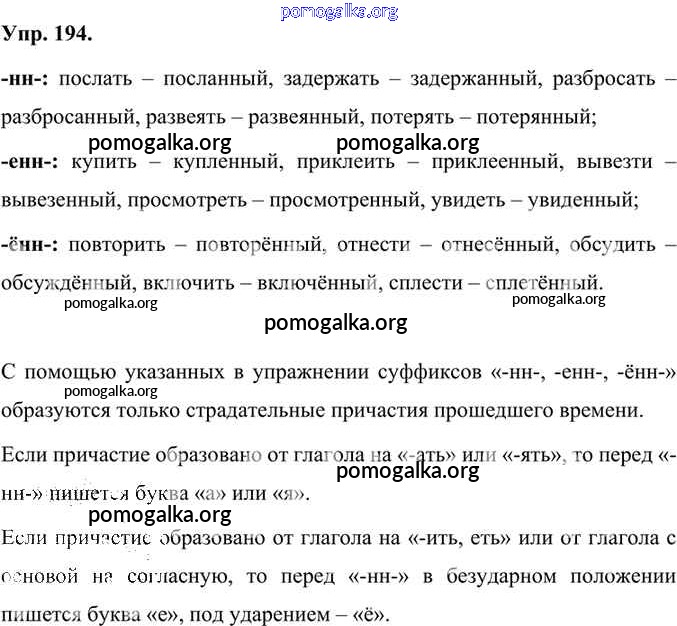 Готовые ответы - Русский язык 7 класс Быстрова Е.А. - упражнение часть 1 194