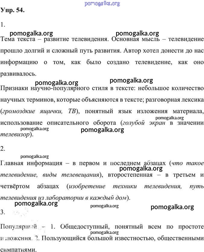 Готовые ответы - Русский язык 7 класс Быстрова Е.А. - упражнение часть 1 54