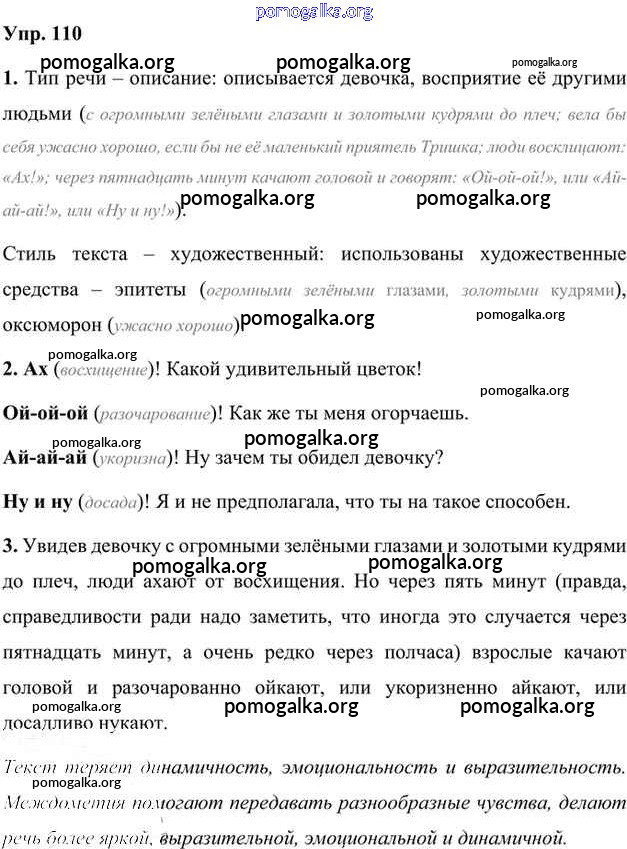 Готовые ответы - Русский язык 7 класс Быстрова Е.А. - упражнение часть 2 110